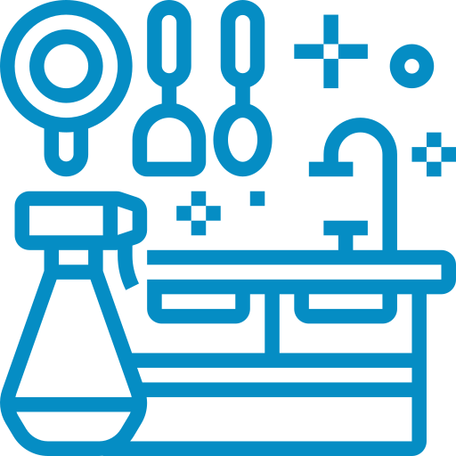 Wiping down benchtops, cleaning the fridge, washing and drying dishes.